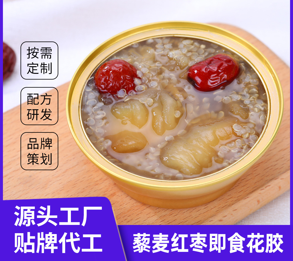 恒源健康(厦门)食品科技有限公司讯:恒源健康(厦门)食品科技有限公司即食花胶礼盒滋补品白花胶奶冻OEM藜麦红枣鱼胶鱼肚贴牌定制详情如下: