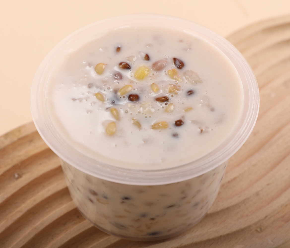 配料:水、有机纯牛奶、有机白砂糖、有机椰浆粉、有机三色青稞(白青稞、蓝青稞、黑青稞)、有机糯玉米粒、有机燕麦米、有机奇亚籽