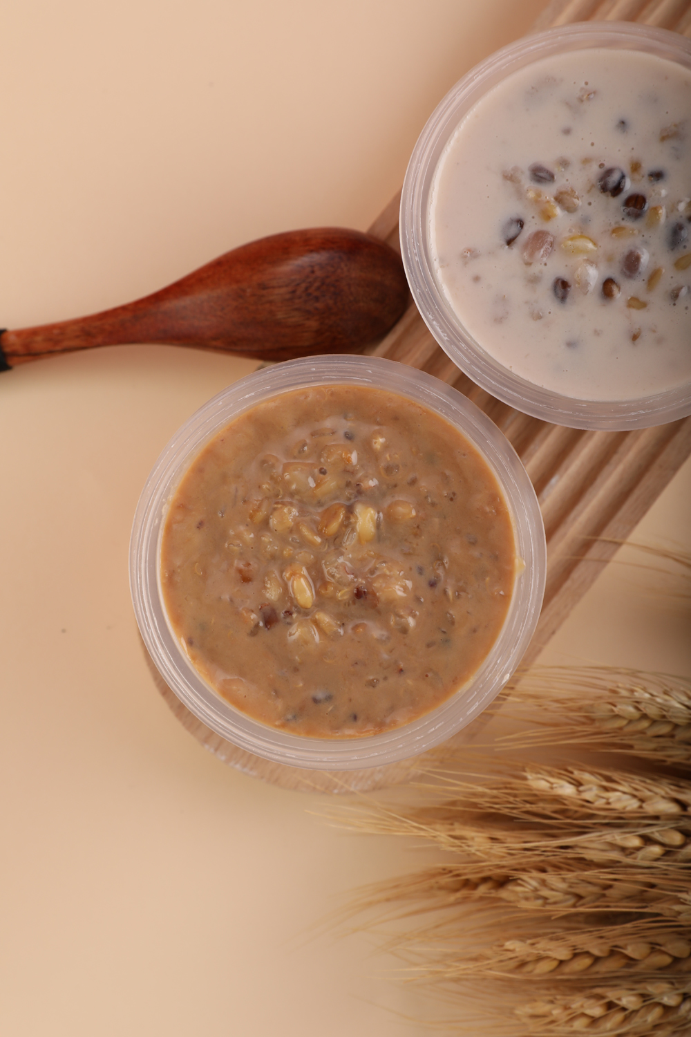 配料:水、有机纯牛奶、有机白砂糖、有机椰浆粉、有机三色青稞(白青稞、蓝青稞、黑青稞)、有机糯玉米粒、有机燕麦米、有机奇亚籽