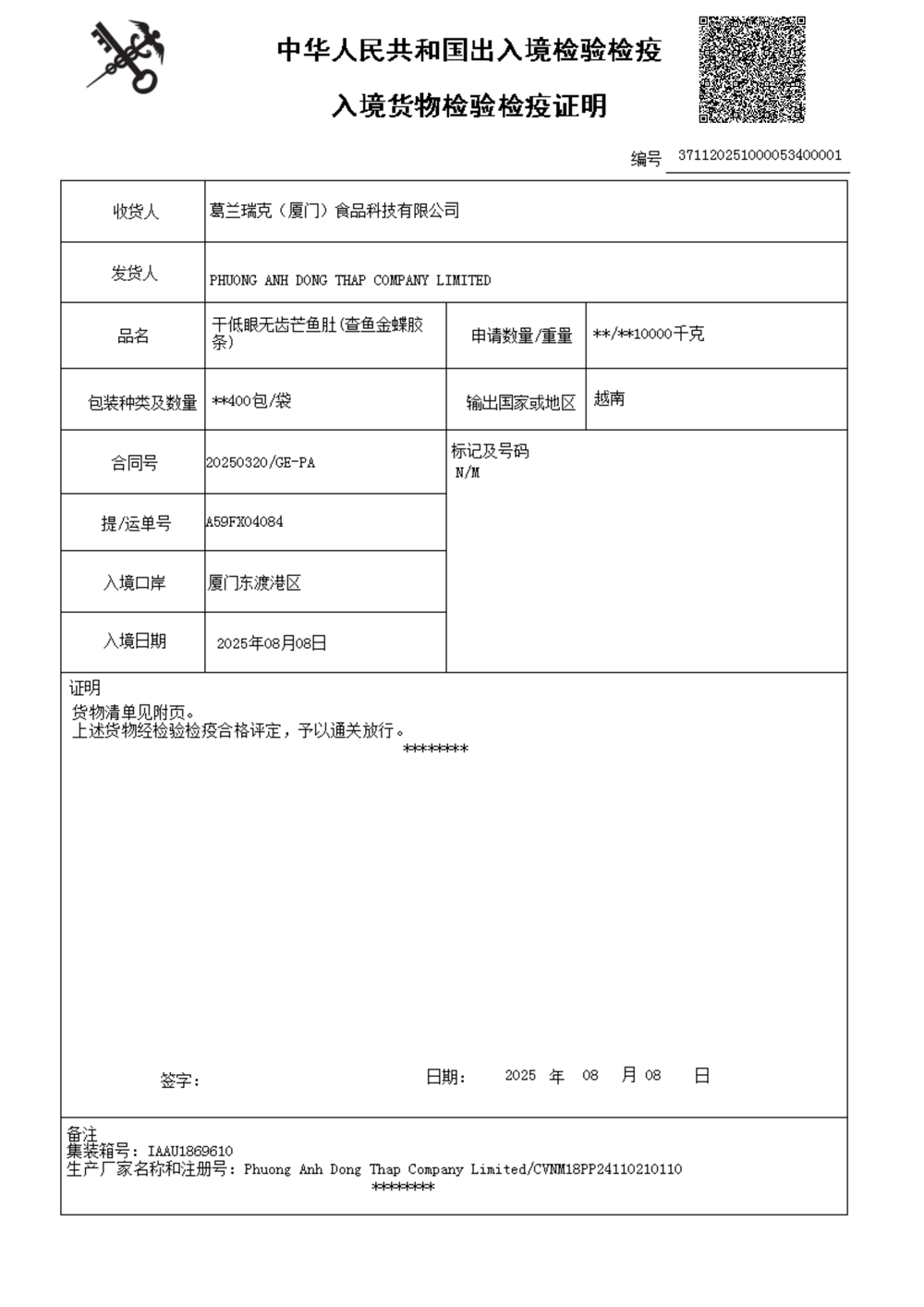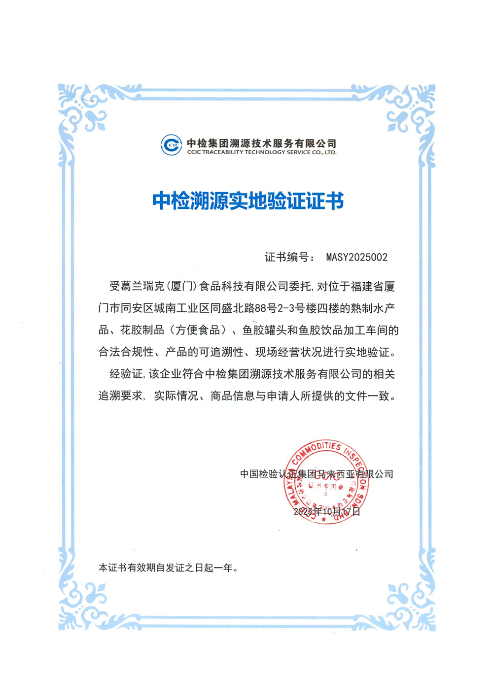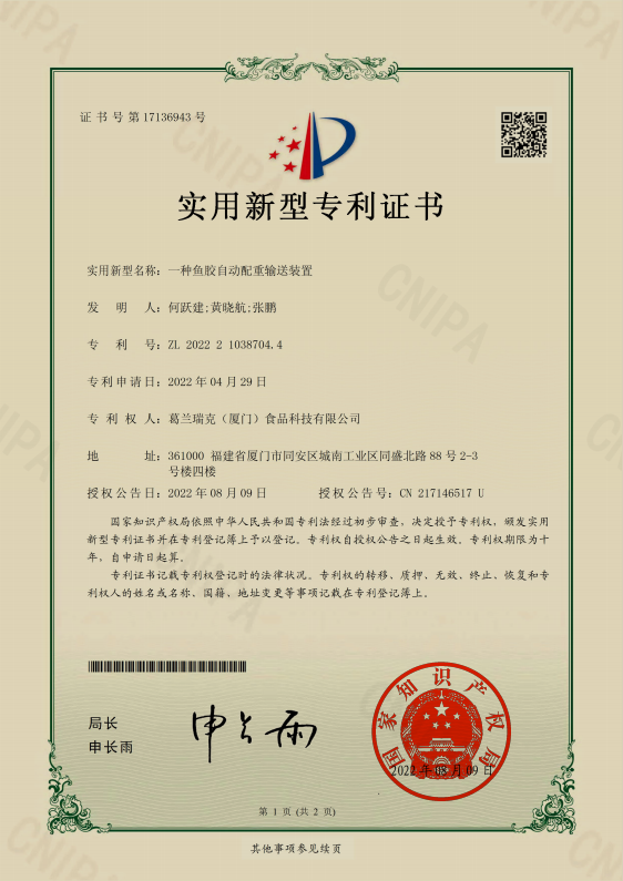 鱼胶溯源证书