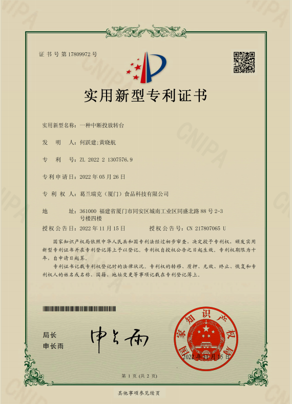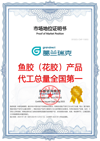 尚普咨询-”葛兰瑞克,鱼胶(花胶)产品代工总量全国第一“证明书