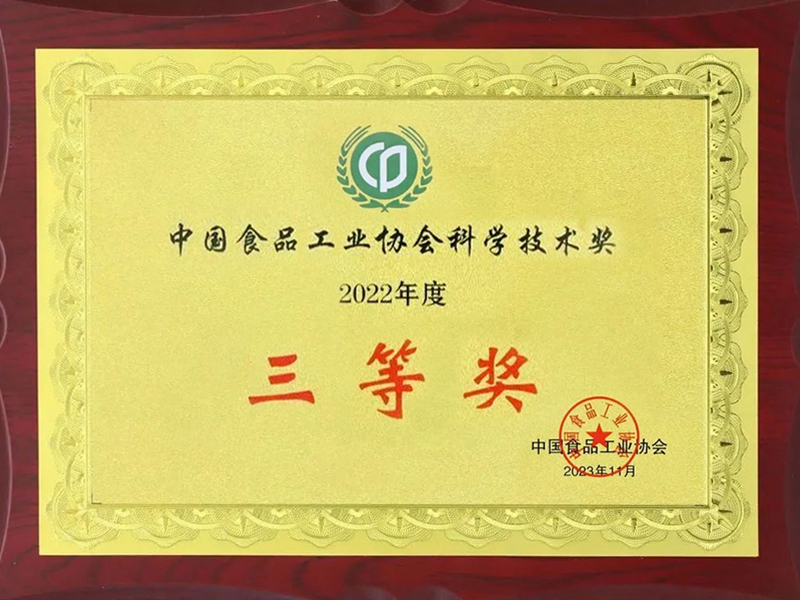 中国食品工业协会科学技术奖2022年度三等奖