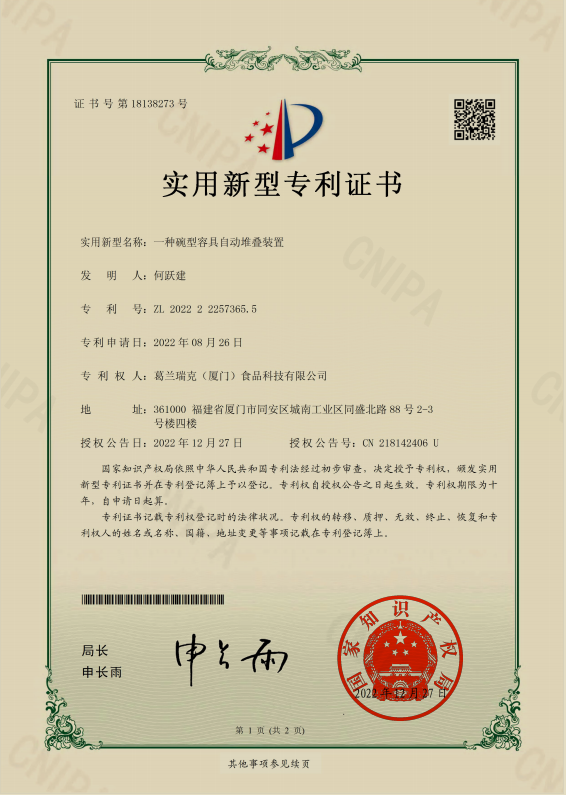 一种碗型容具自动堆叠装置