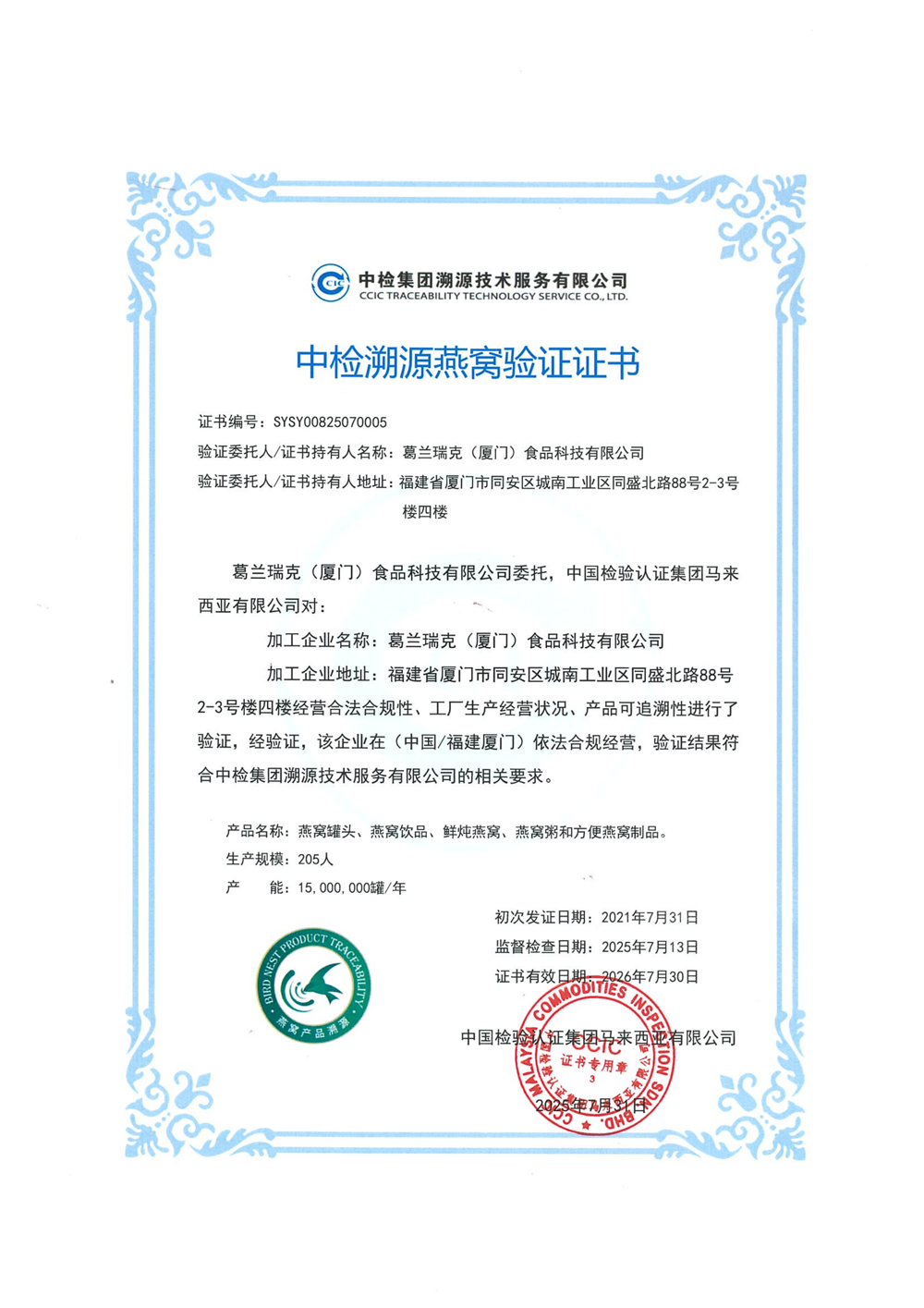 燕窝溯源证书