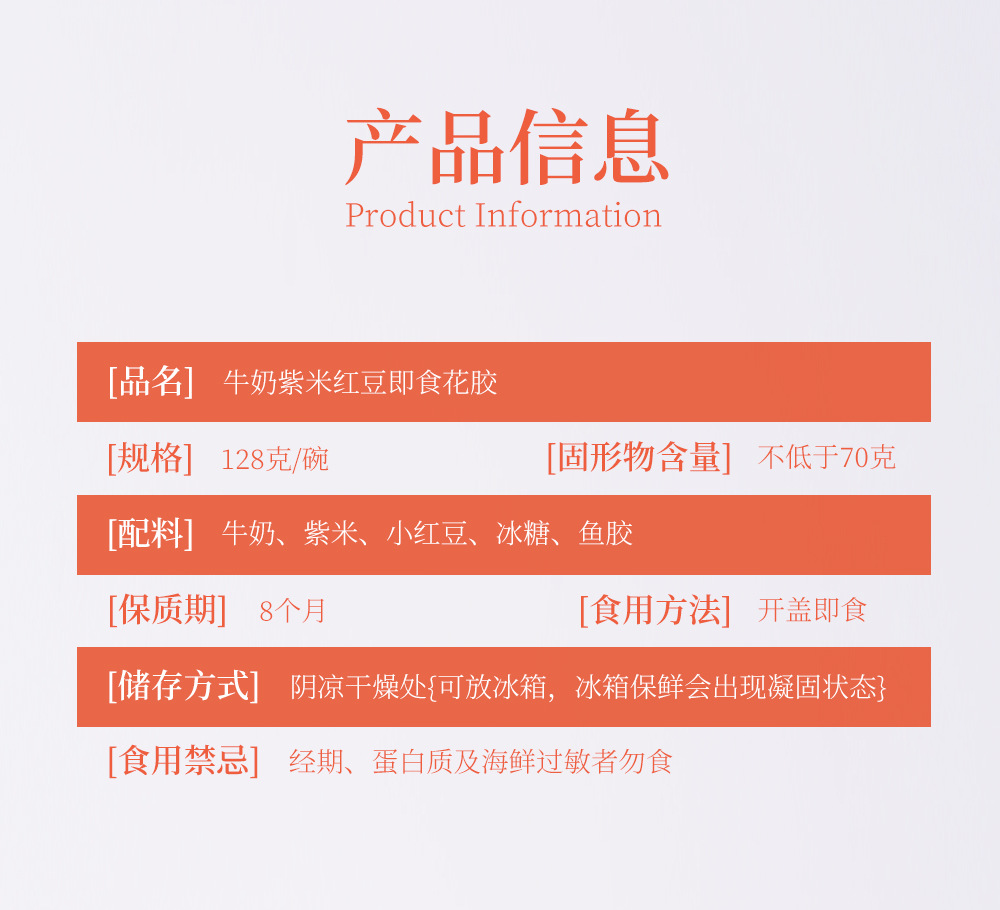 品名:牛奶紫米红豆即食花胶