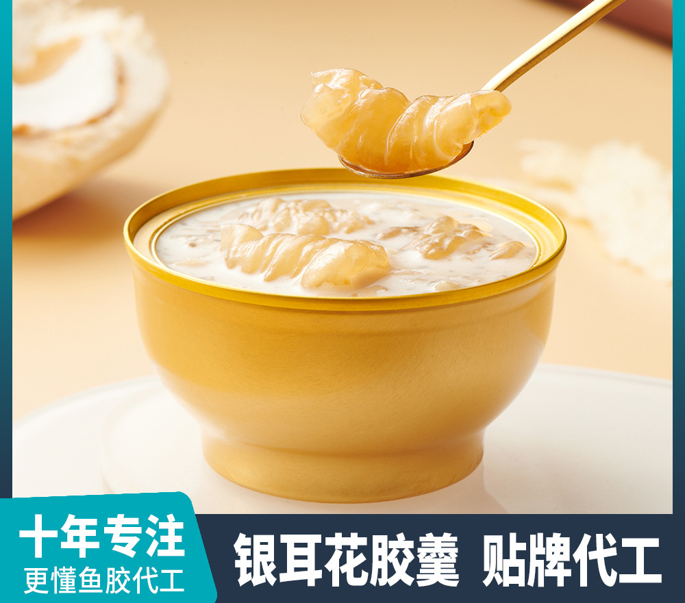 恒源健康(厦门)食品科技有限公司讯:恒源健康(厦门)食品科技有限公司即食花胶速食花胶奶冻白鱼胶批发鱼胶鱼肚代工定制厂家贴牌详情如下: