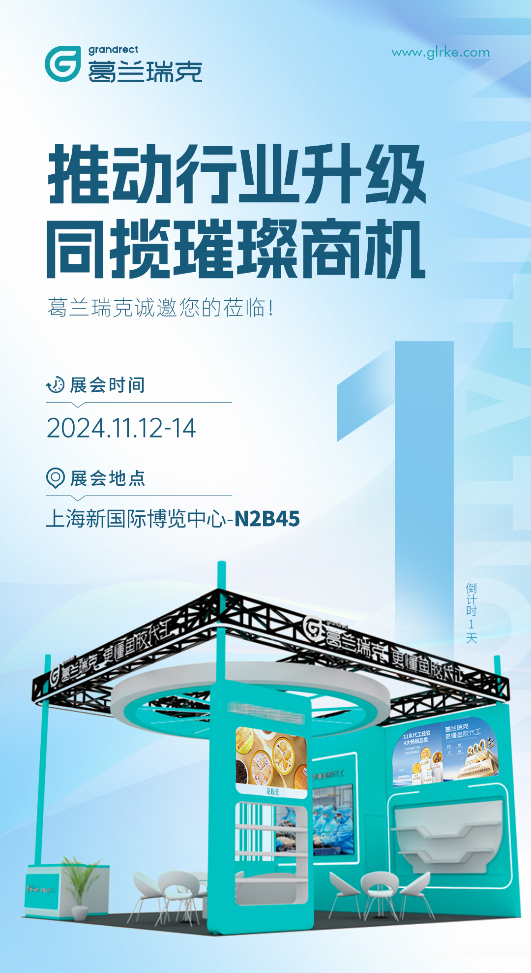上海环球食品展倒计时1天 11月12日−14日 上海新国际博览中心 N2B45 葛兰瑞克 展位 诚邀莅临 与您不见不散!