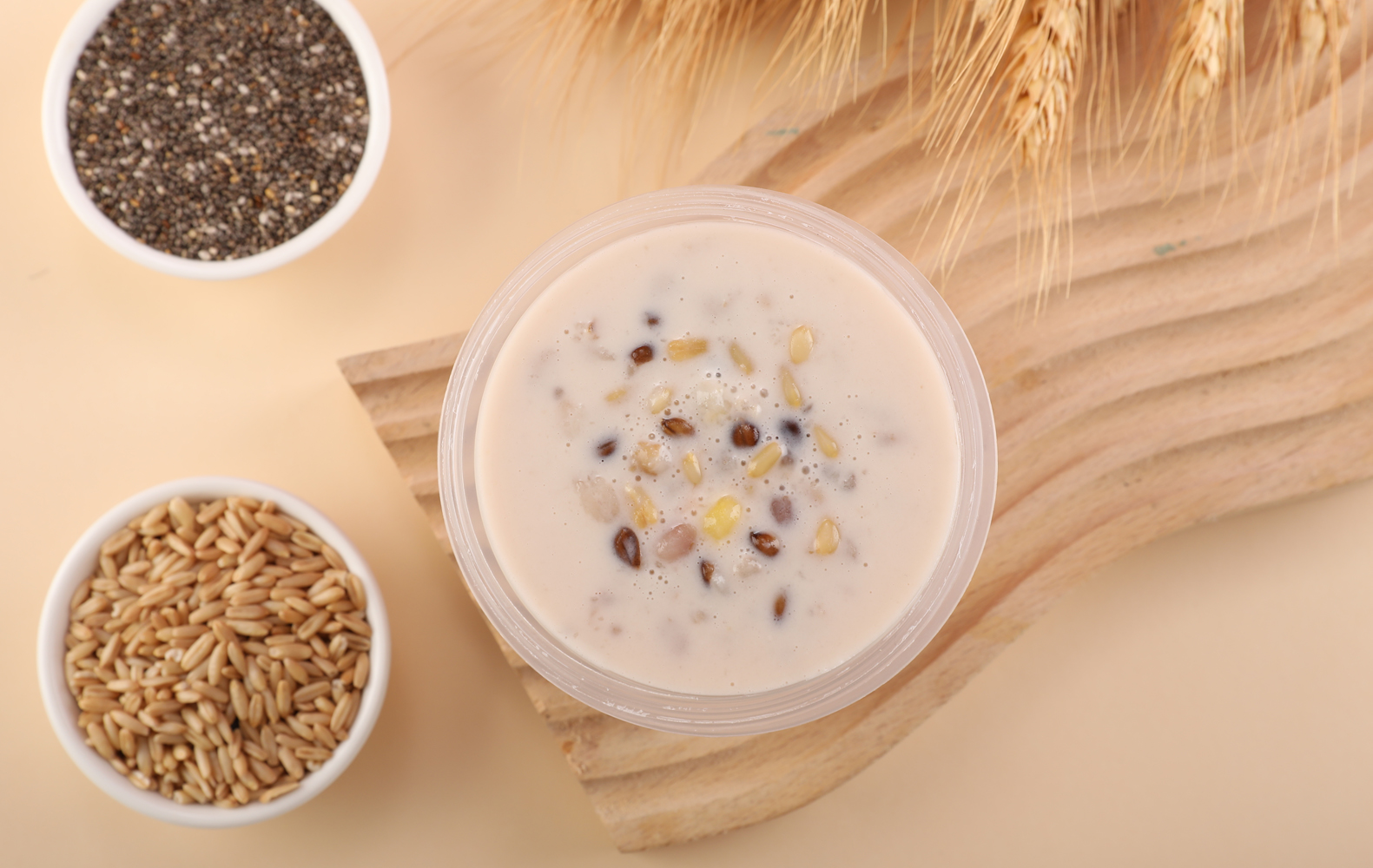 配料:水、有机纯牛奶、有机白砂糖、有机椰浆粉、有机三色青稞(白青稞、蓝青稞、黑青稞)、有机糯玉米粒、有机燕麦米、有机奇亚籽
