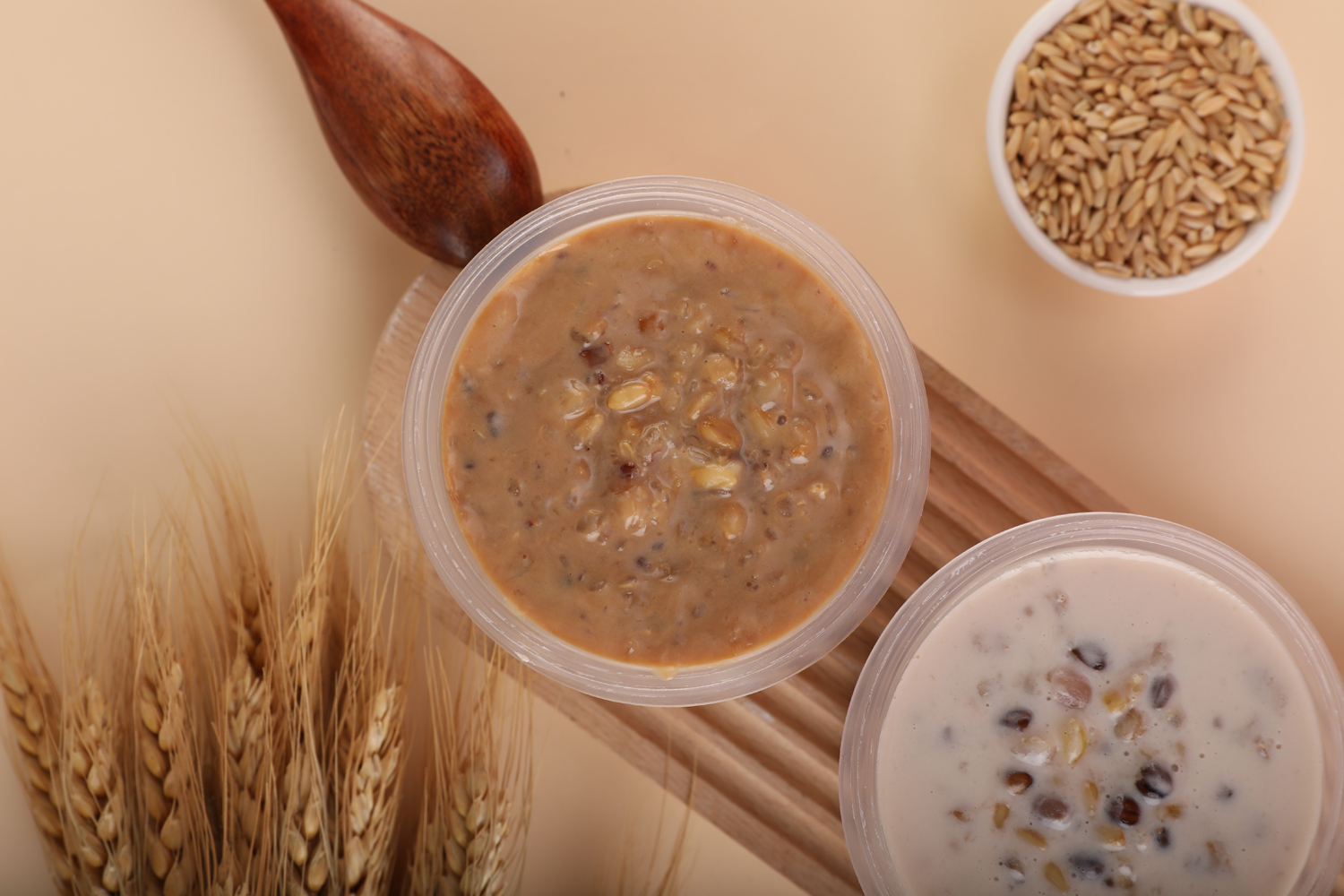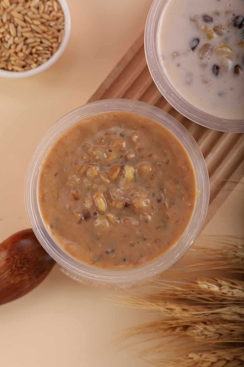 配料:水、有机纯牛奶、有机白砂糖、有机椰浆粉、有机三色青稞(白青稞、蓝青稞、黑青稞)、有机糯玉米粒、有机燕麦米、有机奇亚籽