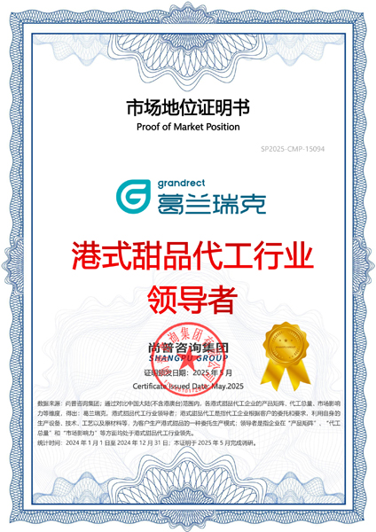 尚普咨询-”葛兰瑞克,港式甜品代工行业领导者“证明书