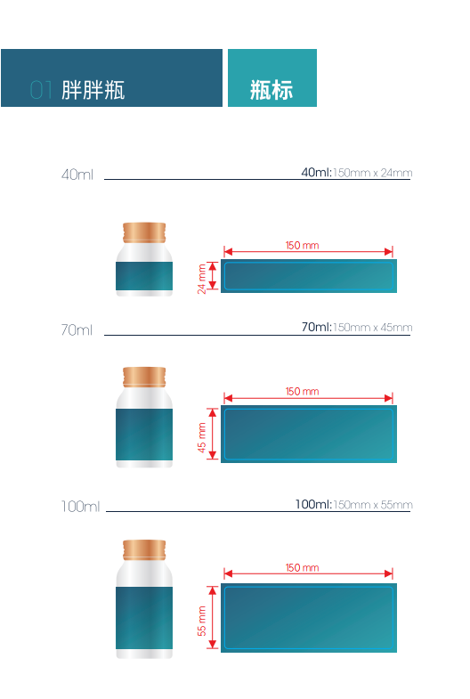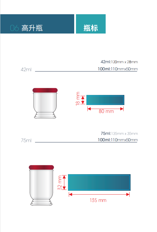 40ml:高7.3厘米、底部直径4.5厘米、顶部直径3.8厘米