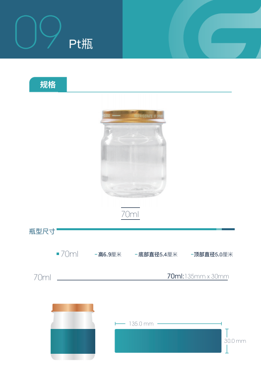 70ml:高6.9厘米、底部直径5.4厘米、顶部直径5.0厘米