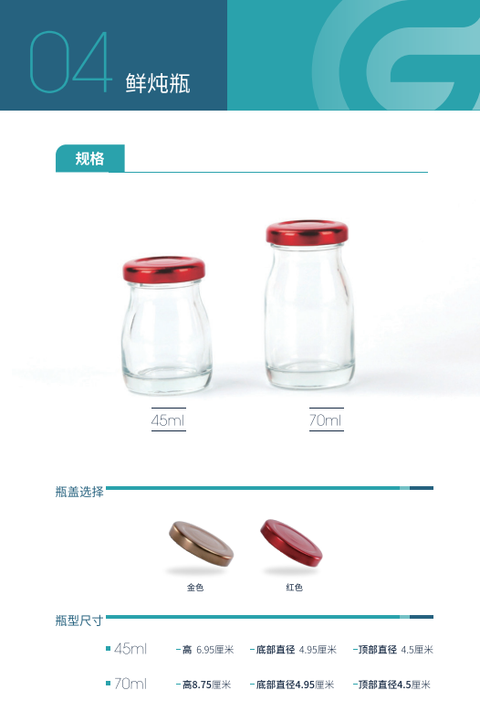 45ml:高6.95厘米、底部直径4.95厘米、顶部直径4.5厘米