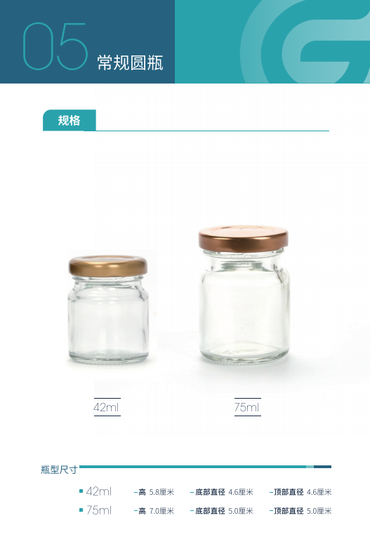 42ml:高5.8厘米、底部直径4.6厘米、顶部直径4.6厘米