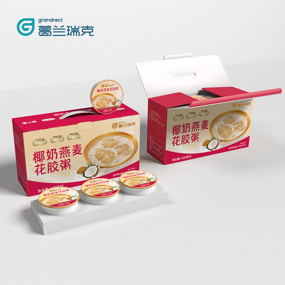 【葛兰瑞克(厦门)食品科技有限公司官网电话18006007803微信同号】花胶生产厂家葛兰瑞克(厦门)食品科技有限公司150g系列LOGO定制即食花胶粥工厂即食鱼胶牛奶血糯米代工贴牌五红详情如下: