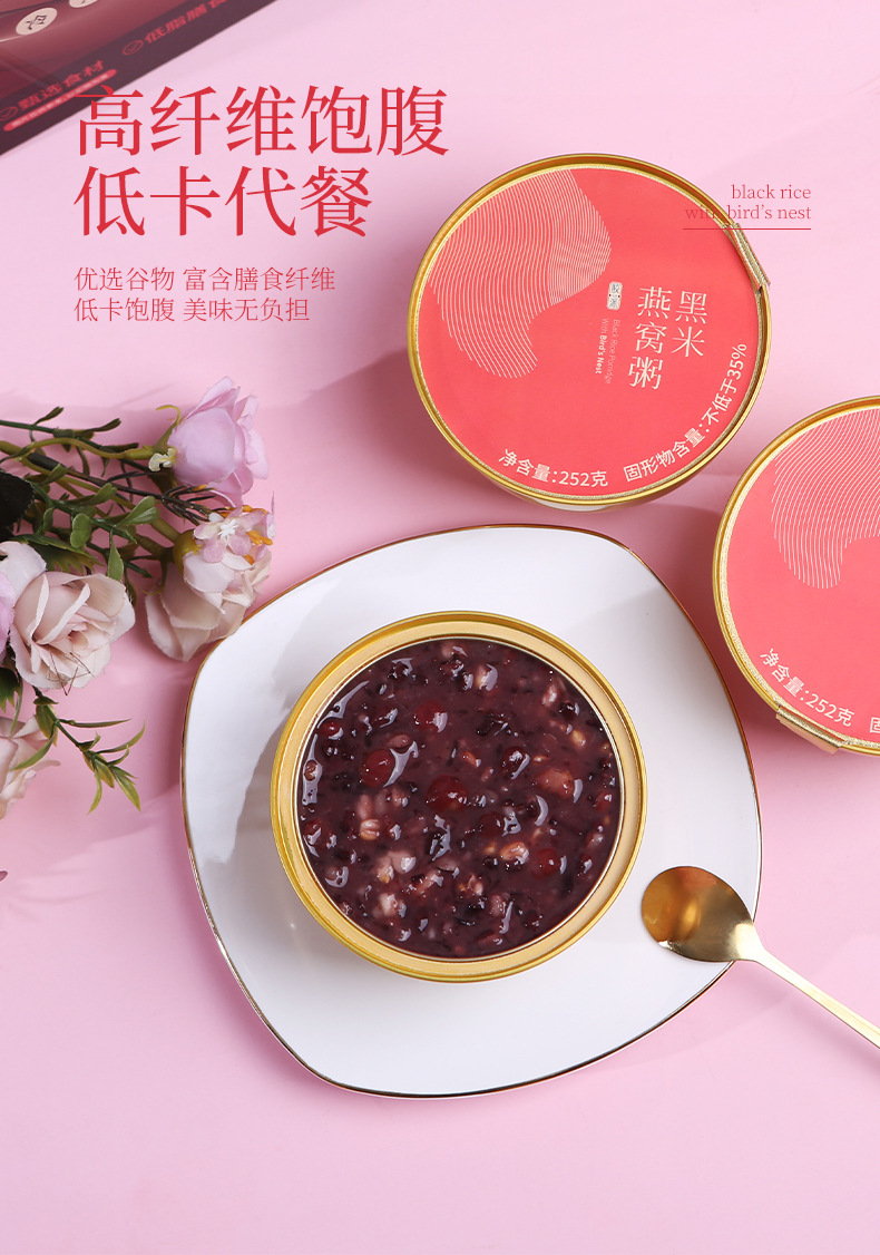 花胶代工厂葛兰瑞克(厦门)食品科技有限公司牛奶紫米燕麦风味即食燕窝粥礼盒装大量批发早餐五谷燕窝粥现货