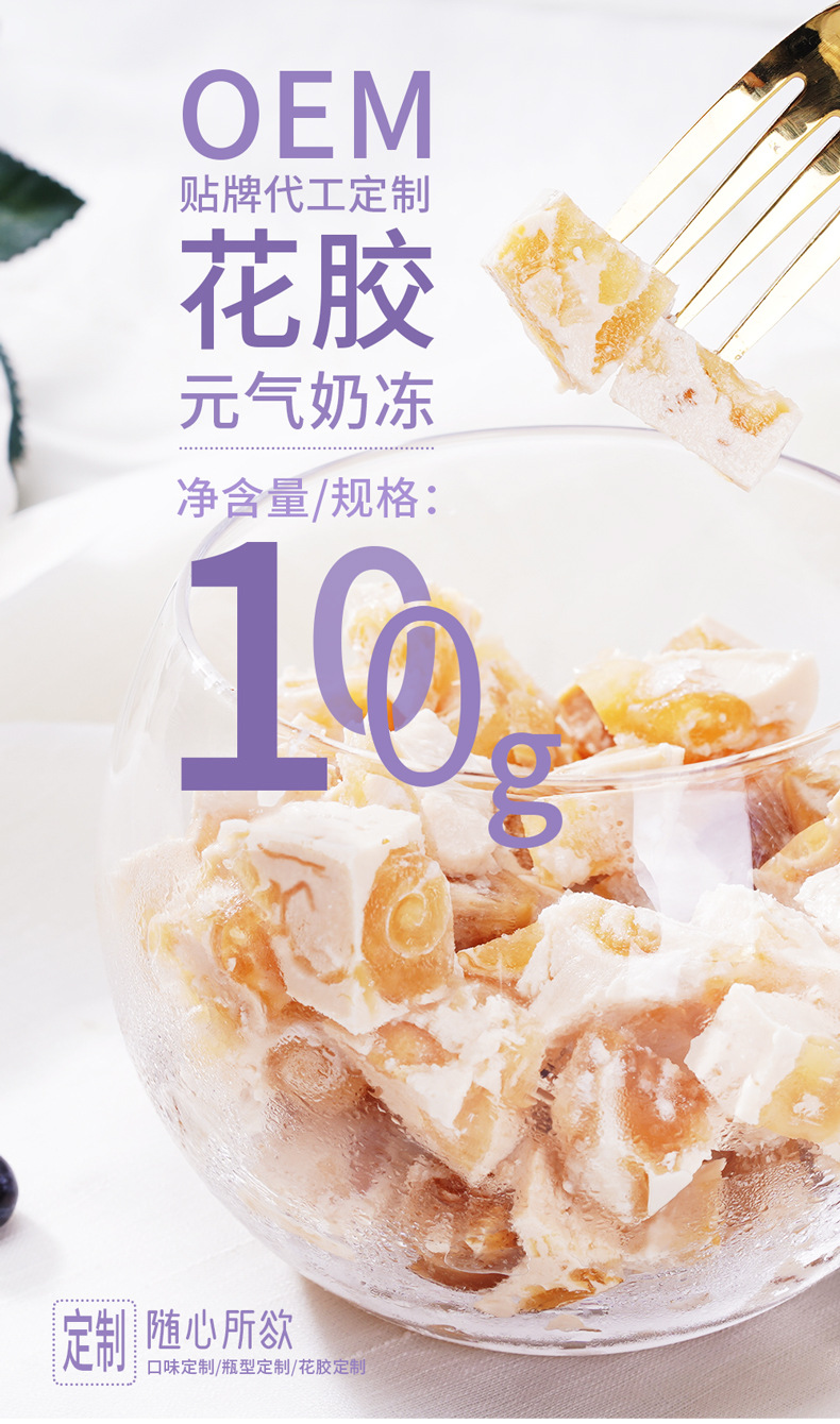 【葛兰瑞克(厦门)食品科技有限公司官网电话18006007803微信同号】鱼胶代工厂葛兰瑞克(厦门)食品科技有限公司100g瓶装即食花胶奶冻代工即食鱼胶罐头贴牌滋补鱼肚花胶即食定制详情如下: