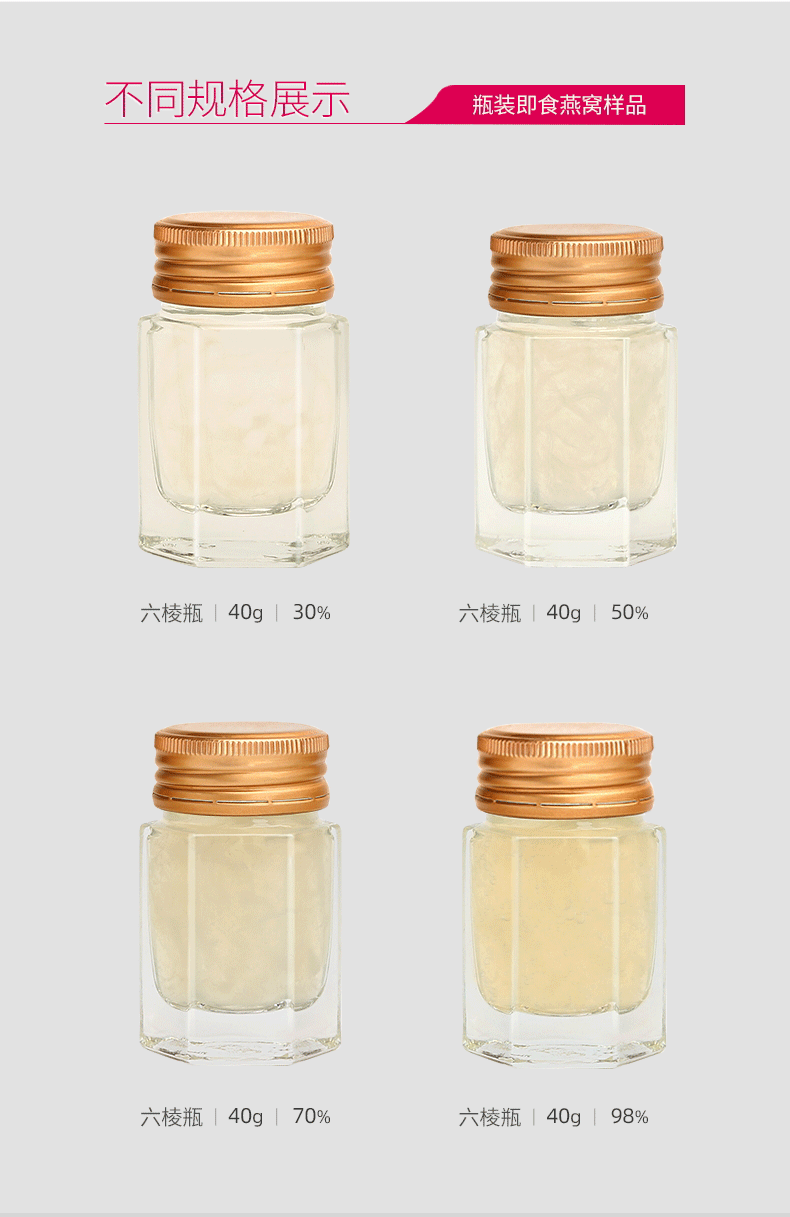 花胶生产厂家葛兰瑞克(厦门)食品科技有限公司即食燕窝六棱瓶装滋补品燕窝溯源燕盏炖煮燕窝即食批发拿样