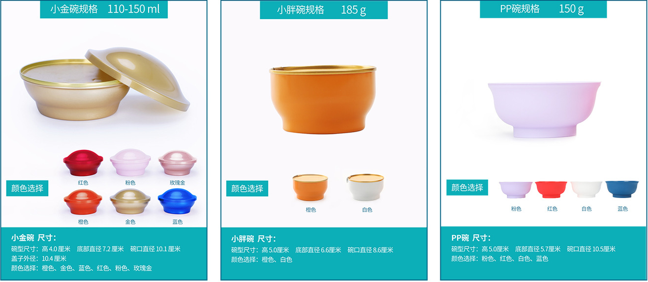 葛兰瑞克(厦门)食品科技有限公司部分可选碗型:小金碗、小胖碗、PP碗